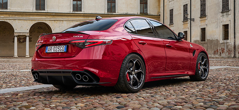 Расход топлива Giulia Quadrifoglio Range (л/100 км): 10,1; Выбросы CO₂ (г/км): 229 - 228. Значения для официального утверждения определены на основе смешанного цикла WLTP, официальное утверждение с 14.06.2023 года. Указанные значения предназначены для сравнительных целей.